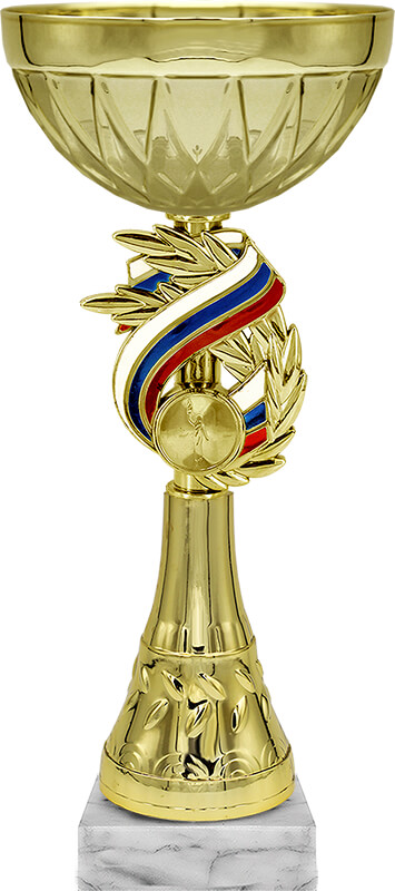 Продукция для истинных патриотов! Во всех изделиях присутствует символика РФ. Кубок, серия кубков традиционной формы с элегантными чашами из металла и изысканными стемами из пластика.